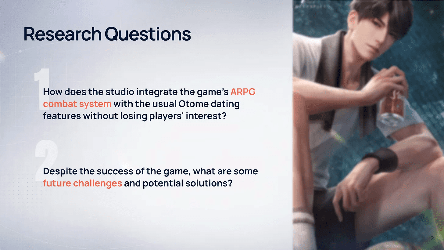 In this project, I shared my holistic understanding of the game. How does it integrate two seemingly (and usually) unrelated genres: ARPG and Otome? How can a grind-heavy game maintain such strong momentum? And what are some things I would like to see, despite the game's well-established success?